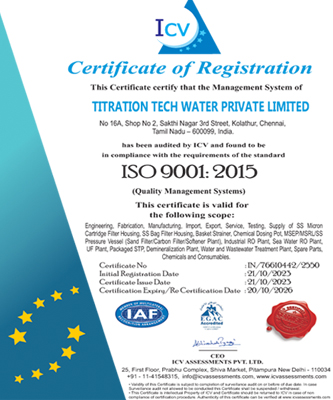 Titration Tech Water Pvt Ltd is an ISO 9001:2015 certified company specializing in the design, fabrication, and supply of high-quality SS filter housings, basket strainers, and water treatment equipment. With strong in-house stainless steel fabrication capabilities, we maintain complete control over quality, dimensional accuracy, and delivery timelines.